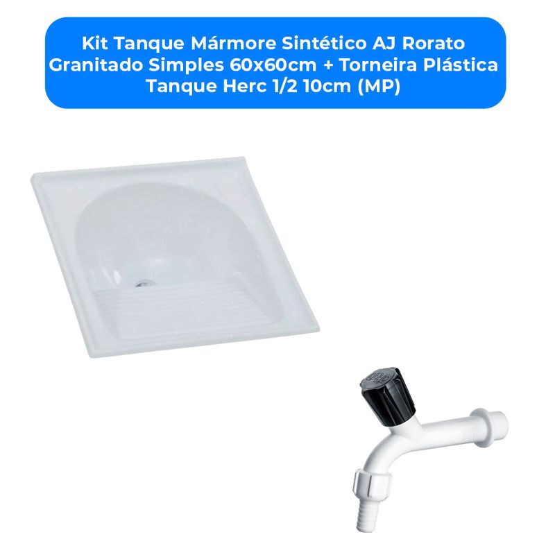 Kit Tanque Mármore Sintético AJ Rorato Granitado Simples 60x60cm + Torneira Plástica Tanque Herc 1/2 10cm (MP)