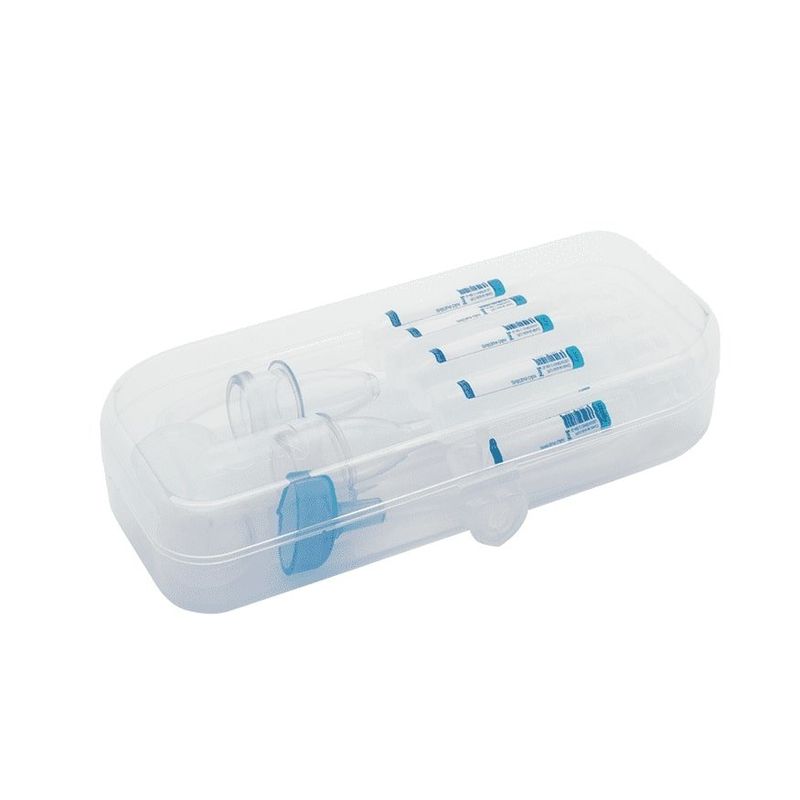 Modo de usar: Segure o sugador mantendo o retentor de secreção para baixo e a saída do tubo para cima. Coloque suavemente a ponta nasal do sugador em uma das narinas do bebê. Através do bocal AZUL comece a sugar, aspirando suavemente. Repita o procedimento na outra narina. O retentor de secreção irá proteger você de aspirar algo em sua boca. Em qualquer condição que a secreção esteja, espessa ou seca, você não irá aspirá-la.