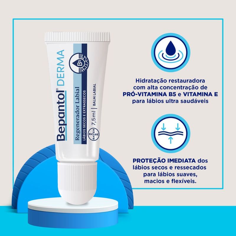 O Bepantol Derma Regenerador Labial é um produto desenvolvido para hidratar, regenerar e proteger os lábios contra o ressecamento e outros danos. Sua fórmula contém dexpantenol, um tipo de pró-vitamina B5 que ajuda a manter a hidratação dos lábios, além de vitamina E, que possui ação antioxidante e ajuda a prevenir o envelhecimento precoce da pele.