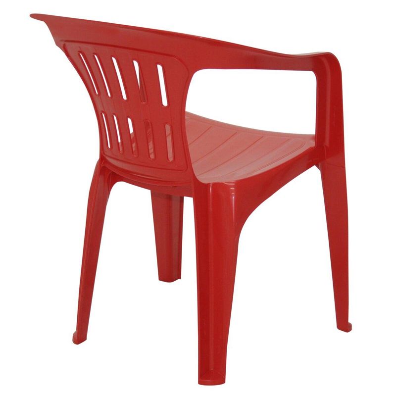 A Cadeira De Plástico Com Braços Tramontina Atalaia Vermelha é uma ótima opção para quem procura uma cadeira confortável e versátil para áreas de lazer.