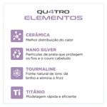 Revestimento Qu4tro Elementos: Cerâmica, titânio, turmalina e nano silver para proteger os fios e garantir um resultado mais saudável. 5 opções de temperatura: De 150°C a 230°C, para um alisamento perfeito e adequado aos diferentes tipos de cabelo. Aquecimento rápido: Aquece em apenas 30 segundos. Bivolt automático: Pode ser usada em qualquer voltagem. Cabo giratório: 360°, para mais praticidade e conforto no uso. Desligamento automático: Após 60 minutos de inatividade.
