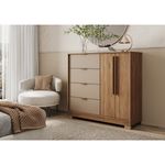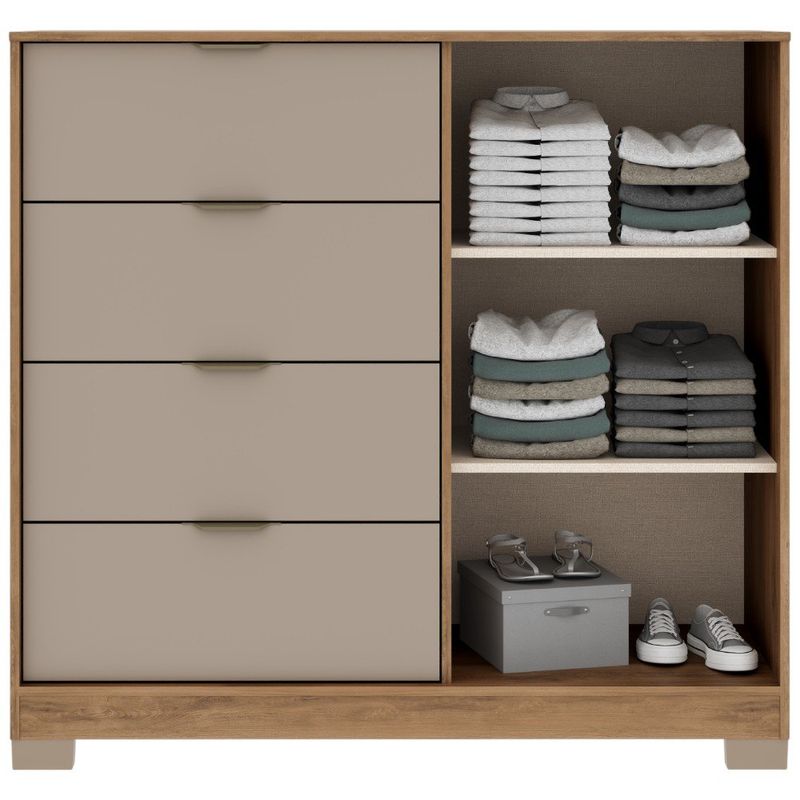Esta cômoda da Carraro combina funcionalidade e design moderno, com acabamento nas cores Freijó e Avelã. Sua estrutura robusta em MDP oferece amplo espaço de armazenamento com 4 gavetas equipadas com corrediças telescópicas para abertura suave. Complementam o móvel 2 portas de bater que revelam prateleiras internas, ideais para guardar itens maiores ou dobrados. É a peça perfeita para organizar seu quarto com durabilidade e um toque de sofisticação.