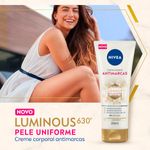 - Creme Corporal Nivea Luminous 630 Antimarcas 200ml é uma solução inovadora e eficaz para tratar e prevenir marcas e manchas escuras na pele.