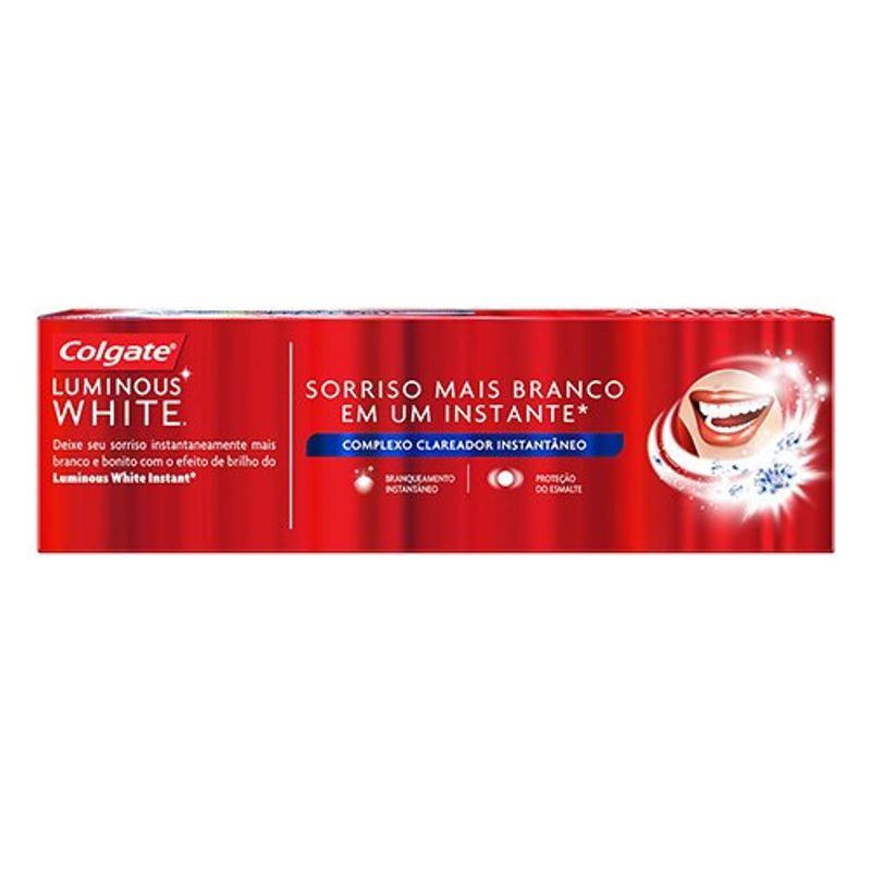 Ilumine o seu sorriso com o Creme Dental Colgate Luminous White Instant de 70g! Sua fórmula avançada garante dentes mais brancos instantaneamente, removendo as manchas superficiais e prevenindo o seu reaparecimento. Desfrute de um sorriso deslumbrante, com confiança e frescor duradouro.