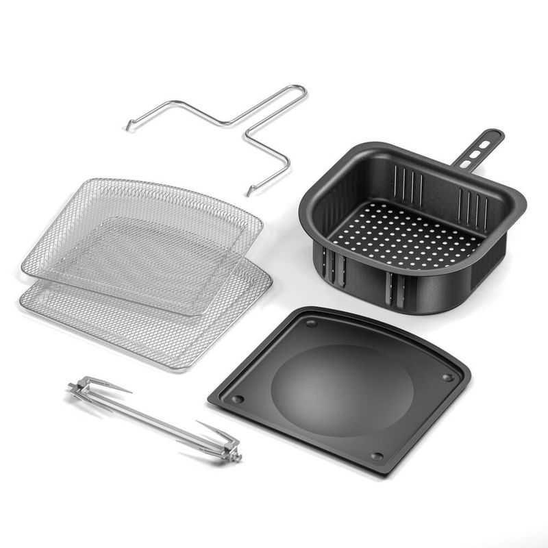 5 em 1: Modos de preparo Airfry, Gratinar, Reaquecer, Desidratar e Rotisserie, permitindo assar, fritar, gratinar e desidratar com apenas um produto.