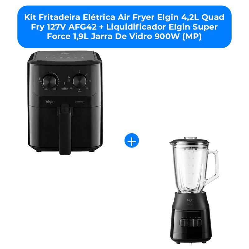 Kit Fritadeira Elétrica Air Fryer Elgin 4,2L Quad Fry 127V AFG42 + Liquidificador Elgin Super Force 1,9L Jarra De Vidro 900W (MP)