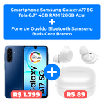 Kit contendo 1 Smartphone Samsung Galaxy A17 5G Tela 6,7" 4GB RAM 128GB Azul e 1 Fone de Ouvido Bluetooth Samsung Buds Core Branco