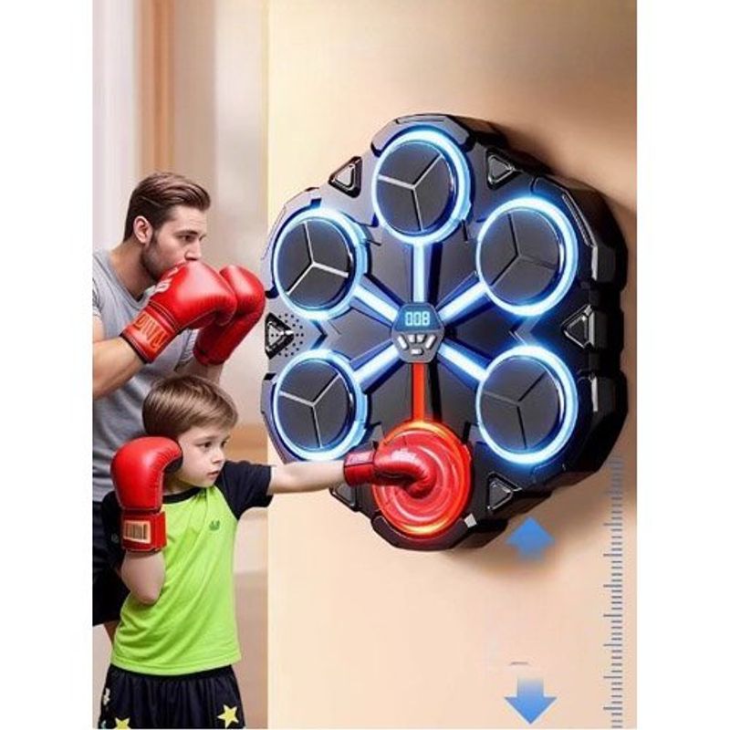 A Máquina de Boxe Infantil Musical Smart Brain T-BI é um equipamento de treino interativo que combina boxe e música. Com um painel que se conecta via Bluetooth, ela permite tocar suas músicas favoritas, sincronizando as luzes LED com o ritmo para guiar os golpes. O produto desafia a coordenação olho-mão, os reflexos e a agilidade das crianças. É uma forma divertida e dinâmica de praticar exercícios, feita de material resistente e com fácil instalação em paredes.