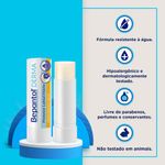 O protetor labial Bepantol Derma FPS50 ajuda a hidratar e proteger os lábios contra o ressecamento e o envelhecimento precoce causado pelo sol, deixando-os mais macios e suaves ao toque.