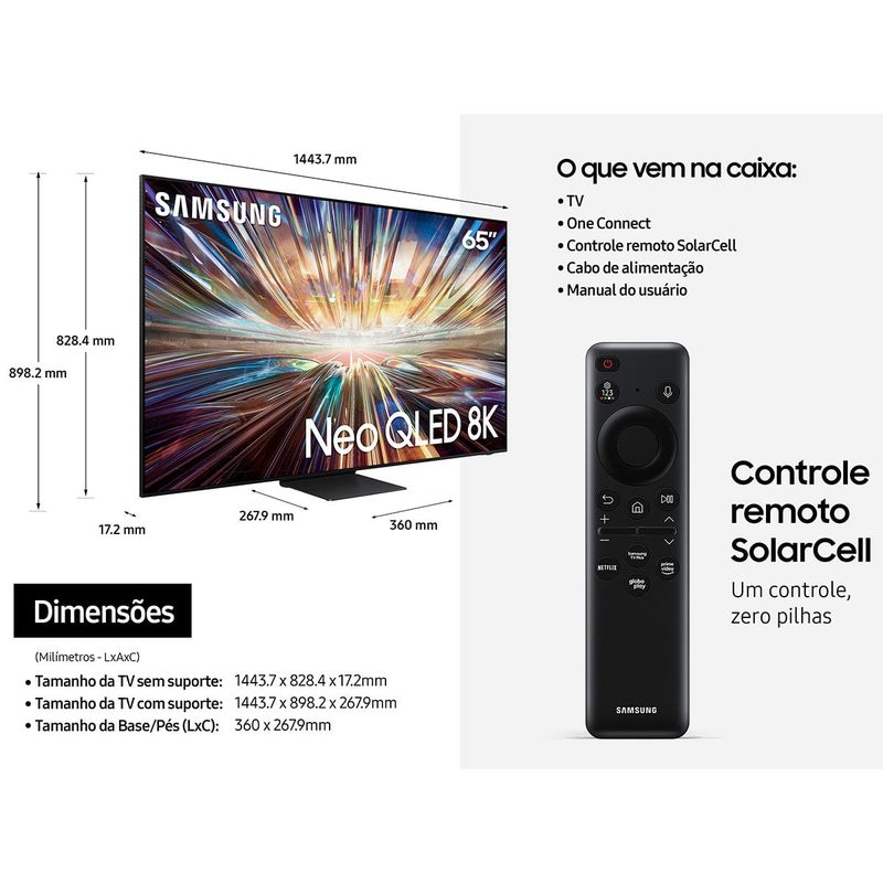 Processador AI Quantum 8K: A inteligência artificial da Samsung otimiza a imagem e o som para oferecer a melhor experiência visual e sonora possível.